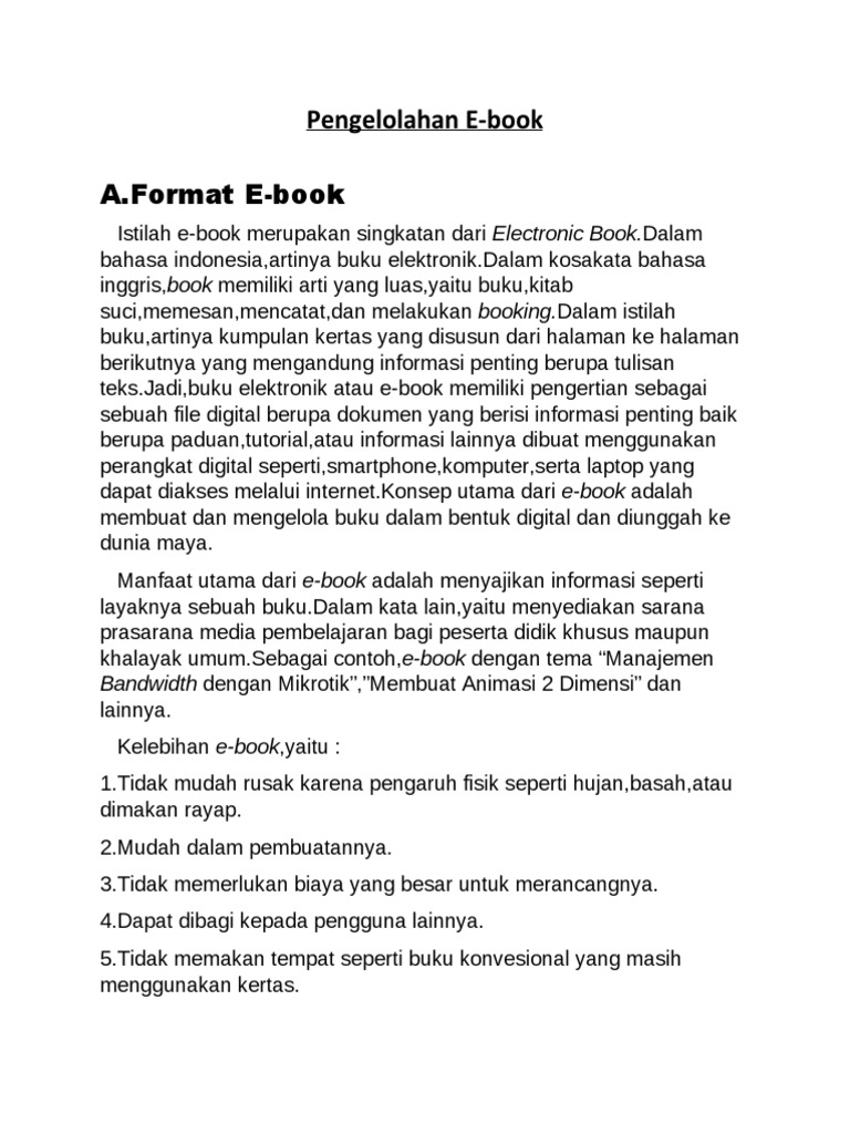 29 Format E Book Pengertian Fungsi Tujuan Manfaat Cara from pendidikanmu.com Salah satu jenis file yang secara khusus digunakan untuk menyimpan buku digital ebook dan sengaja dibuat untuk bekerja pada perangkat mobile dengan kebutuhan bandwith yang relatif kecil ketika mengunduh dan membukanya adalahâ¦. Check spelling or type a new query. We did not find results for: Maybe you would like to learn more about one of these?